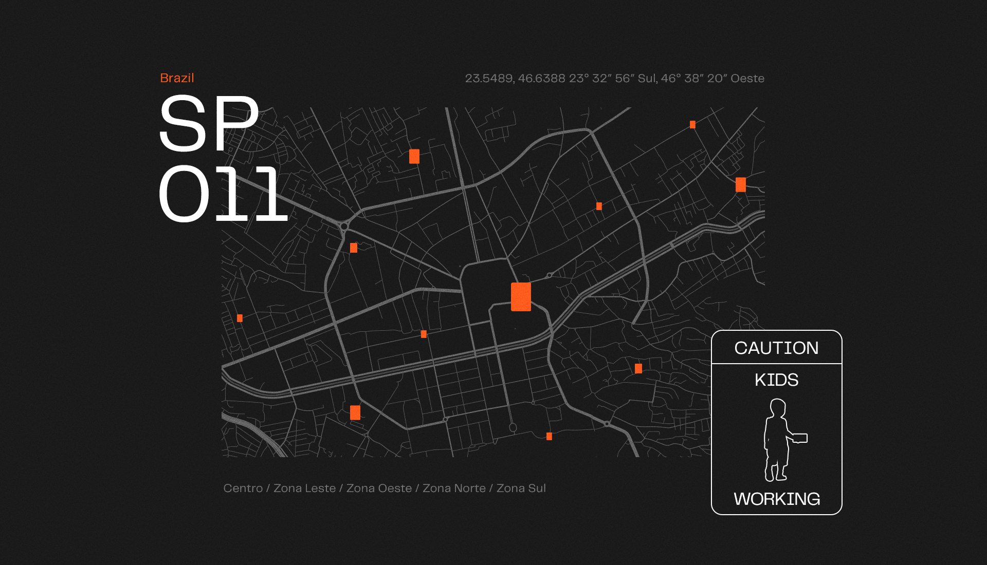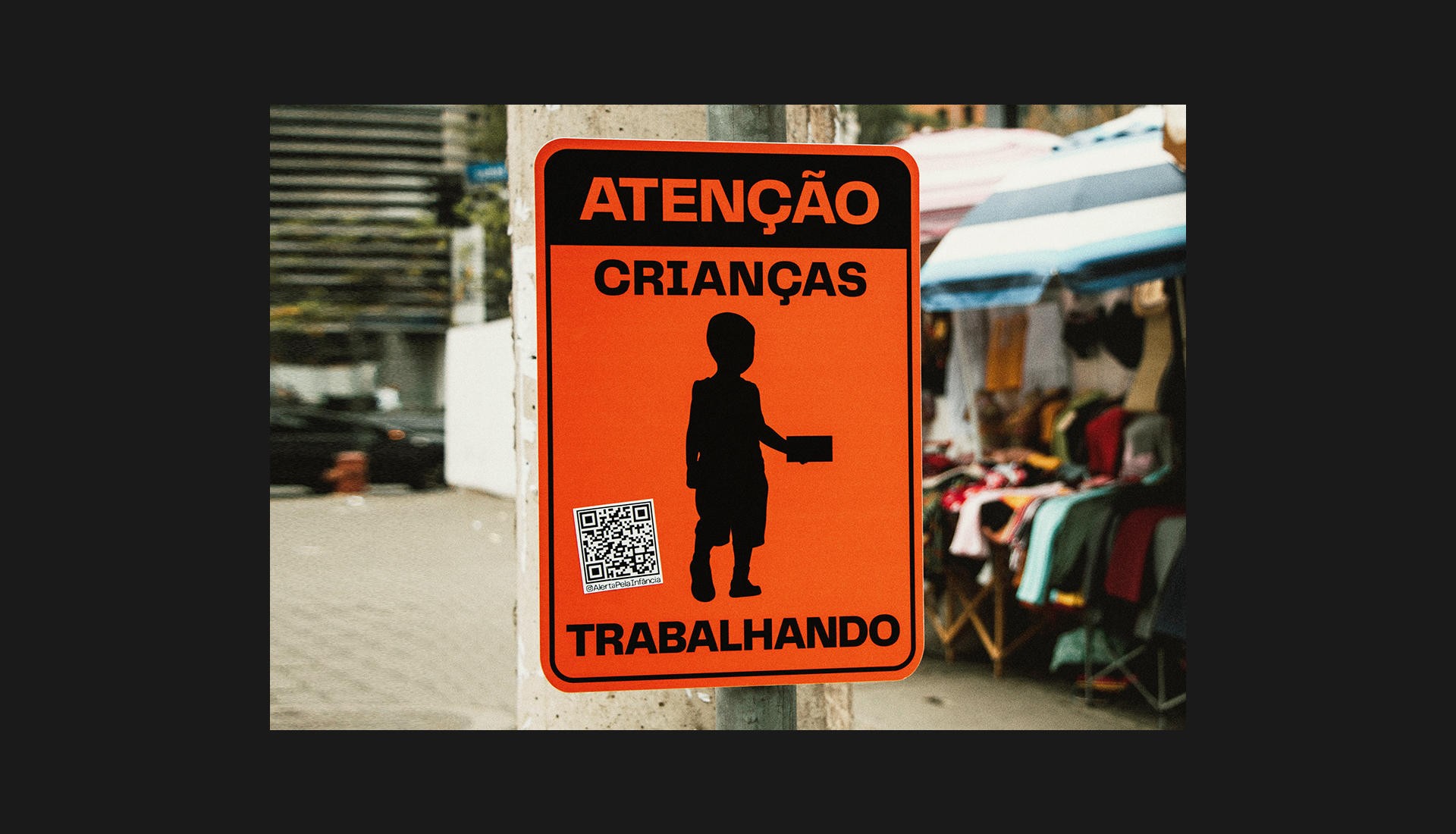 with the phrase “Caution, kids working”. The signs were spread across strategic points in São Paulo,